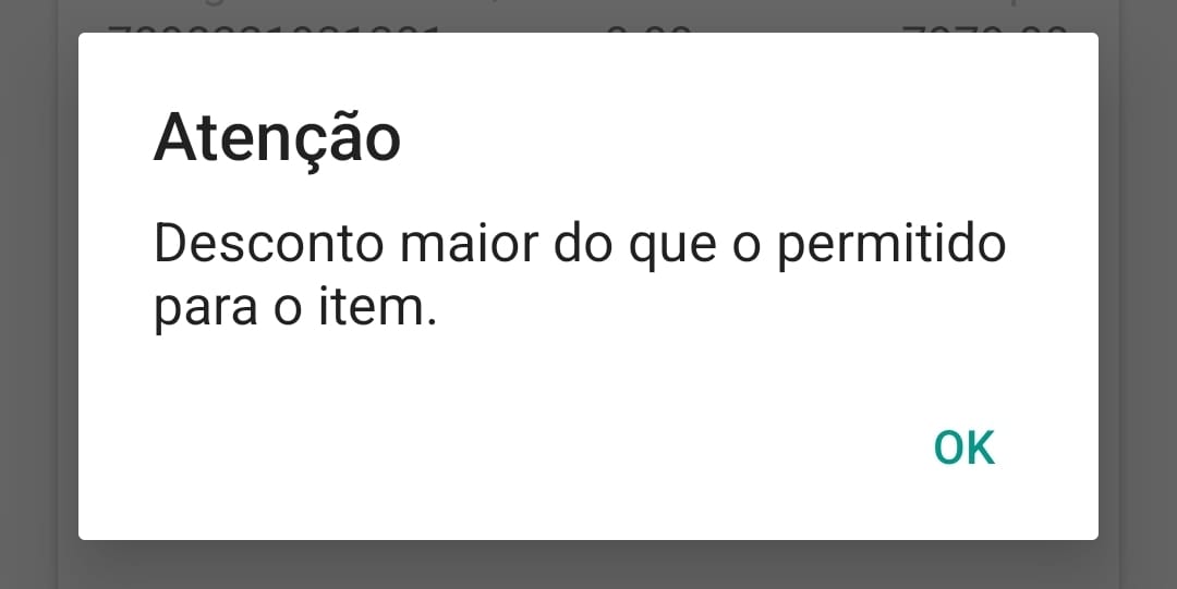 Estas configurações podem ser realizadas em rotinas como a 'Rotina 561 - POLÍTICAS DE DESCONTO', ou dentro do cadastro do produto, definindo o valor máximo ou mínimo com regras internas da empresa. - Devido a essas configurações internas, o força de vendas pode apresentar um aviso informando que ao usuário sobre o desconto acima do permitido pela empresa, conforme imagem abaixo: