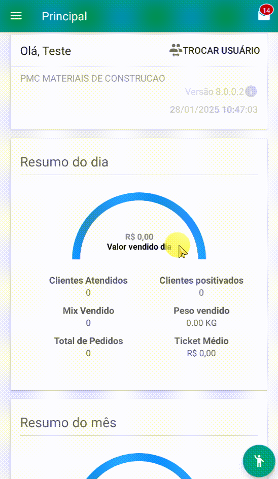 Visão Geral O dashboard de resumo do mês no SGM Vendas apresenta os principais indicadores de desempenho das vendas do mês atual. Sua funcionalidade é estática, ou seja, não permite ações como filtros ou alterações manuais na tela. Os valores ...