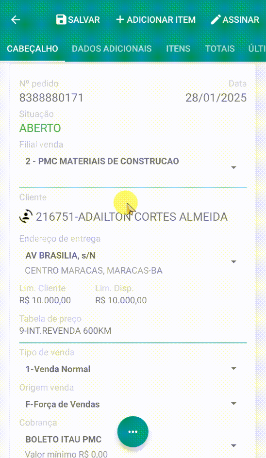 - O pedido está aberto para negociações e pode ser editado livremente.