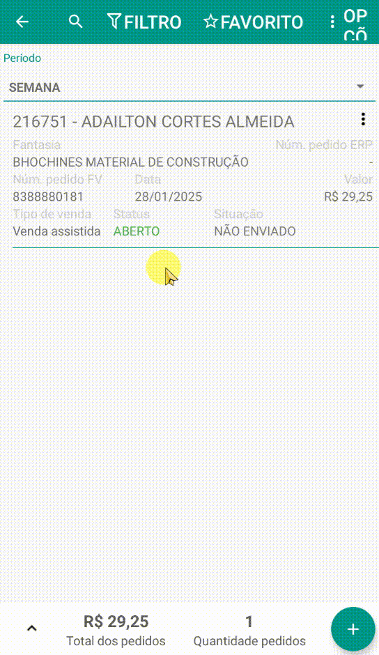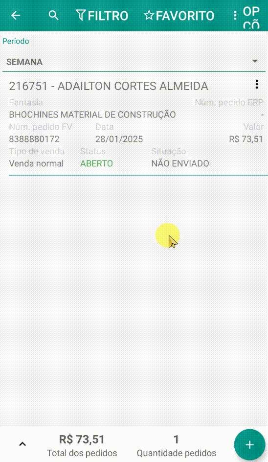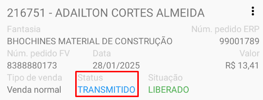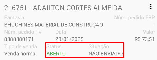 - O pedido ainda não foi transmitido e permanece apenas na base local do usuário.